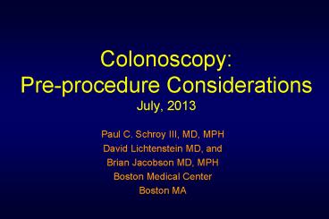 <Notice: Removed> Colonoscopy: Pre-procedure Considerations July, 2013 PowerPoint PPT Presentation