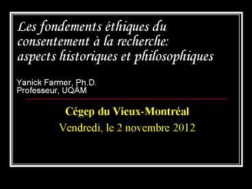 philosophiquesYanick Farmer, Ph.D.Professeur,