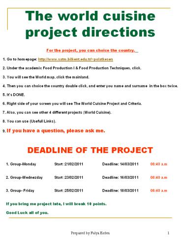 1The world cuisine project directions