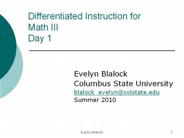Title: Differentiated Instruction for Math III Day 1