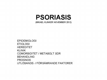 <Notice: Removed> PSORIASIS (MIKAEL KLINKER NOVEMBER 2012) PowerPoint PPT Presentation