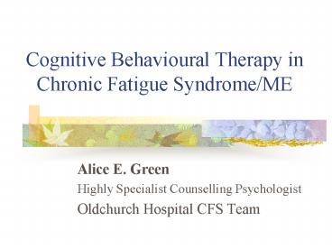 Title: Cognitive Behavioural Therapy in Chronic Fatigue Syndrome/ME