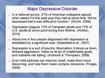 <Notice: Removed> Major Depressive Disorder PowerPoint PPT Presentation