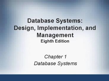 <Notice: Removed> Database Systems: Design, Implementation, and Management Eighth Edition PowerPoint PPT Presentation
