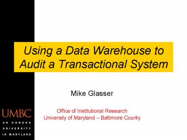<Notice: Removed> Using a Data Warehouse to Audit a Transactional System PowerPoint PPT Presentation