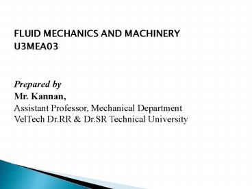 <Notice: Removed> FLUID MECHANICS AND MACHINERY PowerPoint PPT Presentation