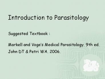 <Notice: Removed> Introduction to Parasitology PowerPoint PPT Presentation