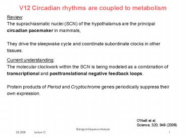 Title: V12 Circadian rhythms are coupled to metabolism