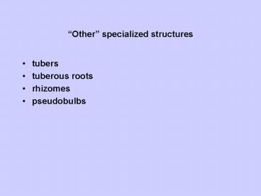 - Tubers and tuberous roots