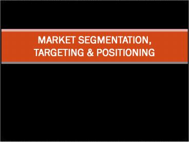 1MARKET SEGMENTATION, TARGETING POSITIONING