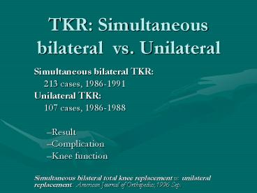 TKR: Simultaneous bilateral vs. Unilateral PowerPoint PPT Presentation