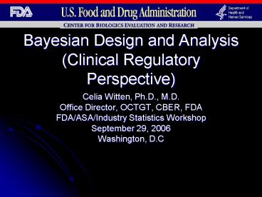 Title: Bayesian Design and Analysis (Clinical Regulatory Perspective)