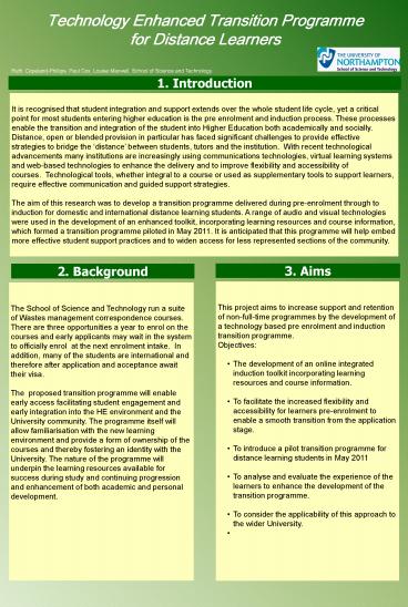 Title: Technology Enhanced Transition Programme for Distance Learners