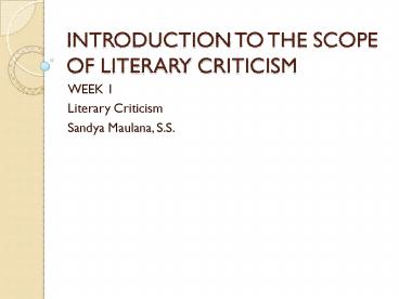 <Notice: Removed> INTRODUCTION TO THE SCOPE OF LITERARY CRITICISM PowerPoint PPT Presentation