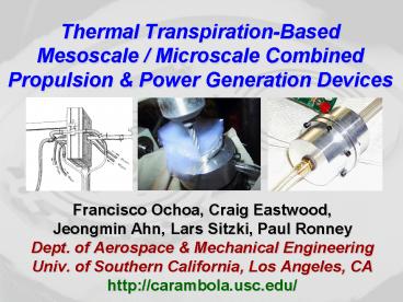 Title: Thermal Transpiration-Based Mesoscale / Microscale Combined Propulsion