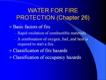WATER FOR FIRE PROTECTION (Chapter 26) PowerPoint PPT Presentation