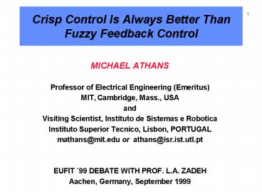 Crisp Control Is Always Better Than Fuzzy Feedback Control PowerPoint PPT Presentation