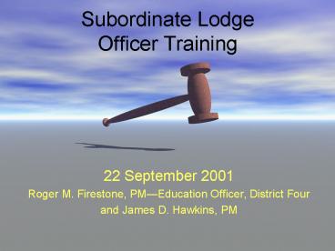<Notice: Removed> Subordinate Lodge Officer Training PowerPoint PPT Presentation
