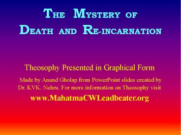 Title: THE MYSTERY OF DEATH AND RE-INCARNATION