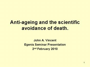 <Notice: Removed> Anti-ageing and the scientific avoidance of death. PowerPoint PPT Presentation