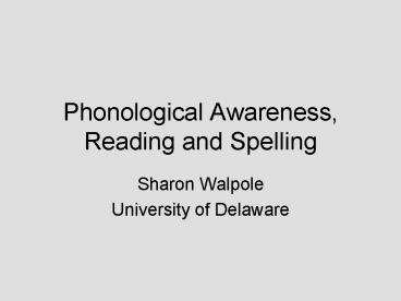 <Notice: Removed> Phonological Awareness, Reading and Spelling PowerPoint PPT Presentation