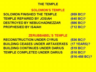 • TEMPLE REPAIRED BY JOSIAH (640 BC)?