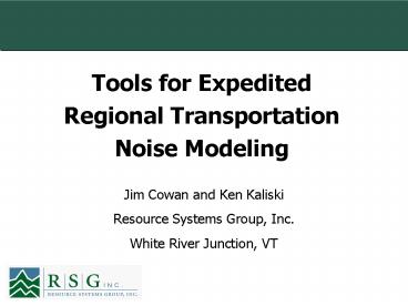 Tools for Expedited Regional Transportation Noise Modeling PowerPoint PPT Presentation