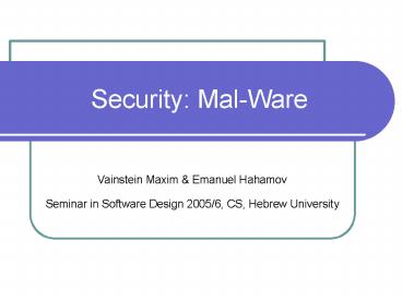 <Notice: Removed> Security: Mal-Ware PowerPoint PPT Presentation