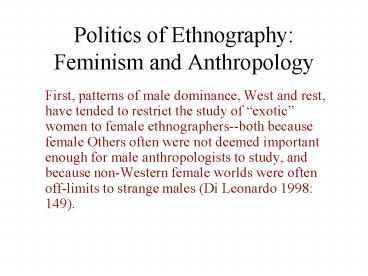 <Notice: Removed> Politics of Ethnography: Feminism and Anthropology PowerPoint PPT Presentation