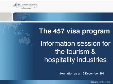1The 457 visa program Information session for the