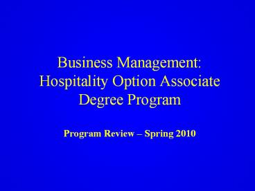 Business Management: Hospitality Option Associate Degree Program Program Review PowerPoint PPT Presentation