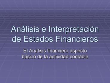 hayan de analizar. - Necesidad de que los Estados Financieros que se