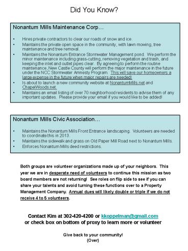 NonantumMills.net and ChapelWoods.net. - Maintains an email listing of over 70