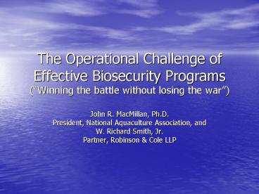 <Notice: Removed> The Operational Challenge of Effective Biosecurity Programs ( PowerPoint PPT Presentation