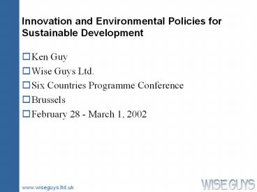 environmental policy and sustainable development - What can innovation policy do for sustainable