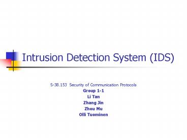 <Notice: Removed> Intrusion Detection System (IDS) PowerPoint PPT Presentation