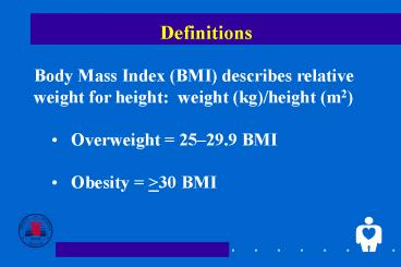 - Body Mass Index (BMI) describes relative