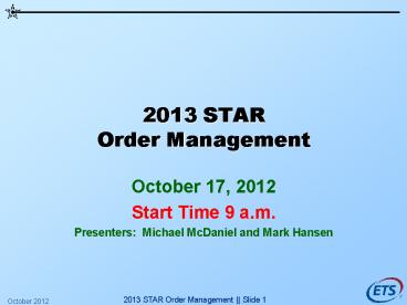 <Notice: Removed> 2013 STAR Order Management PowerPoint PPT Presentation
