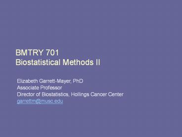 Title: BMTRY 701 Biostatistical Methods II