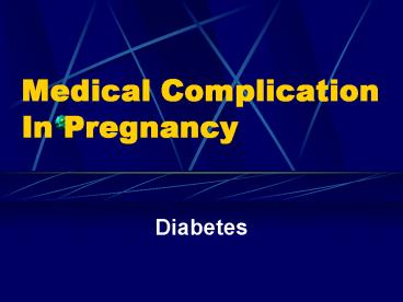 Title: Medical Complication In Pregnancy