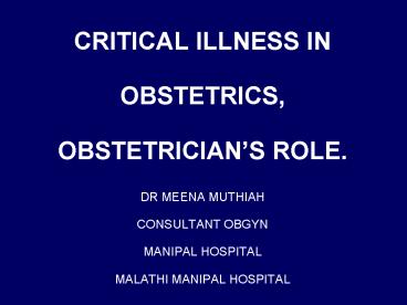 2CRITICAL ILLNESS IN OBSTETRICS.