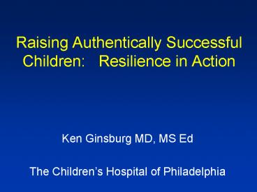 Title: Raising Authentically Successful Children: Resilience in Action