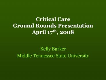 <Notice: Removed> Critical Care Ground Rounds Presentation April 17th, 2008 PowerPoint PPT Presentation