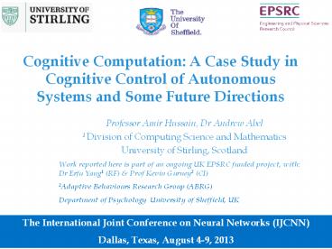 <Notice: Removed> Cognitive Computation: A Case Study in Cognitive Control of Autonomous Systems and Some Future Directions PowerPoint PPT Presentation