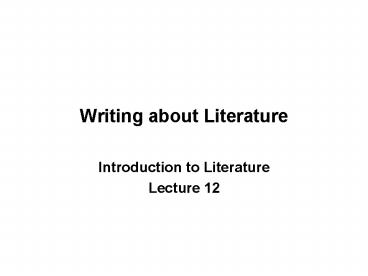 <Notice: Removed> Writing about Literature PowerPoint PPT Presentation