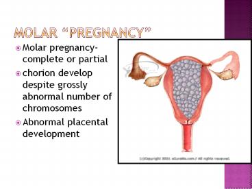 • A molar pregnancy can develop when an egg that is