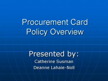 <Notice: Removed> Procurement Card Policy Overview PowerPoint PPT Presentation