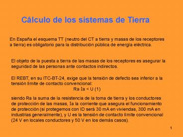 1Cálculo de los sistemas de Tierra