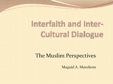 another and reconciliation. - Interfaith dialogue that seeks to promote