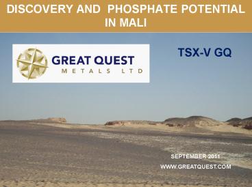 Title: DISCOVERY AND PHOSPHATE POTENTIAL IN MALI